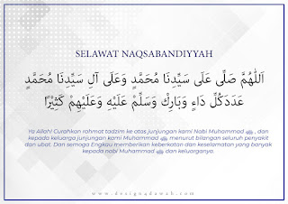 Selawat ini berasal dari Syeikh Khalid An-Naq Syaban pembaharu tarekat Naqsabandiyyah, ia mengatakan; "Bahawasanya selawat ini sangat baik sekali untuk membentuk diri daripada kejahatan penguasa yang zalim, menjaga kehormatan diri atau tipu daya syaitan, bahkan ada sebahagian orang yang menjadikan selawat Naqsabandiyyah sebagai pengantara untuk menyembuhkan penyakit panas."
